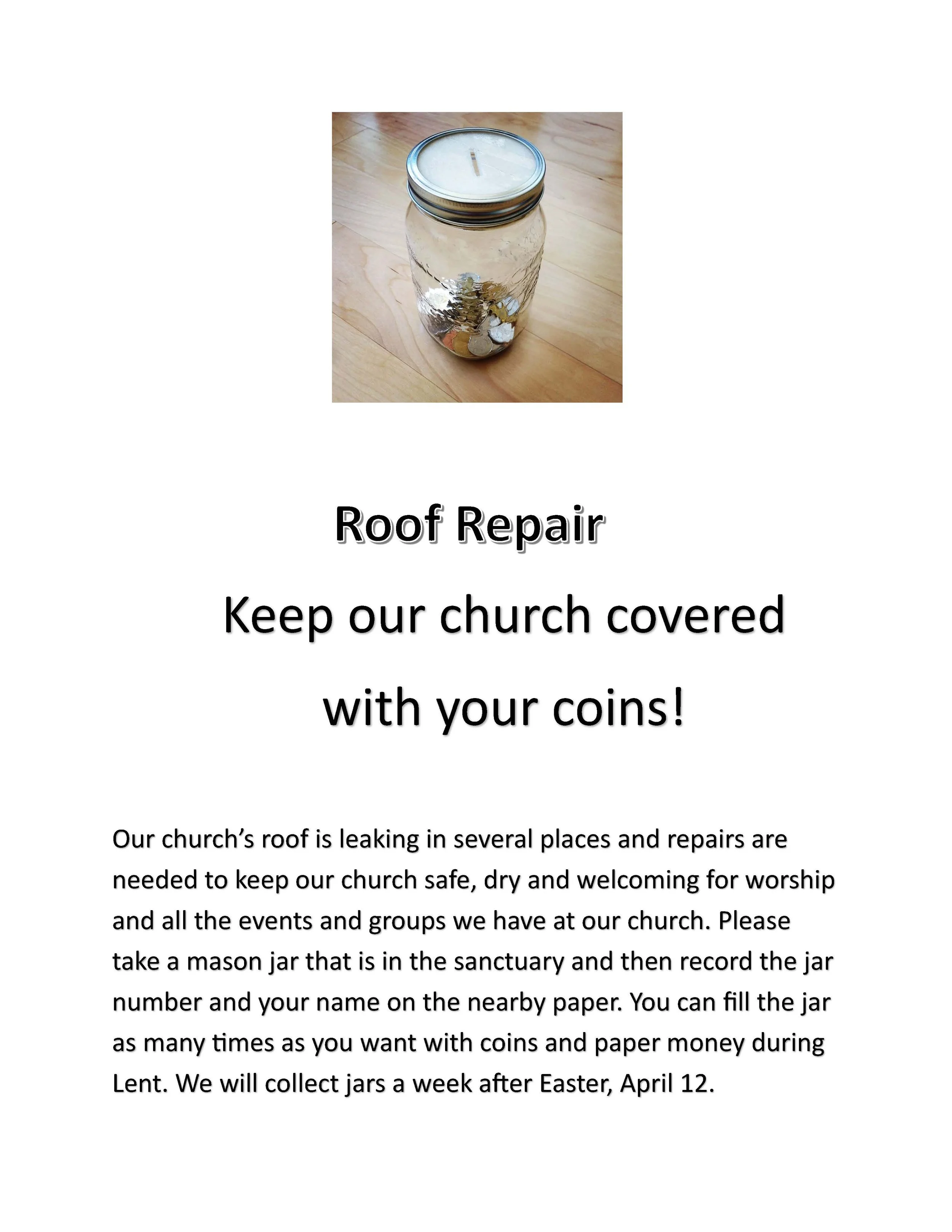 needed to keep our church safe, dry and welcoming for worship